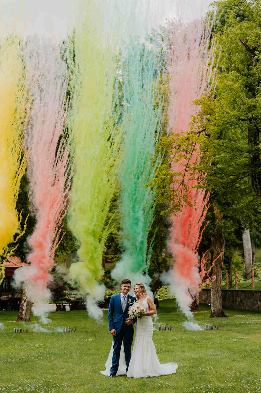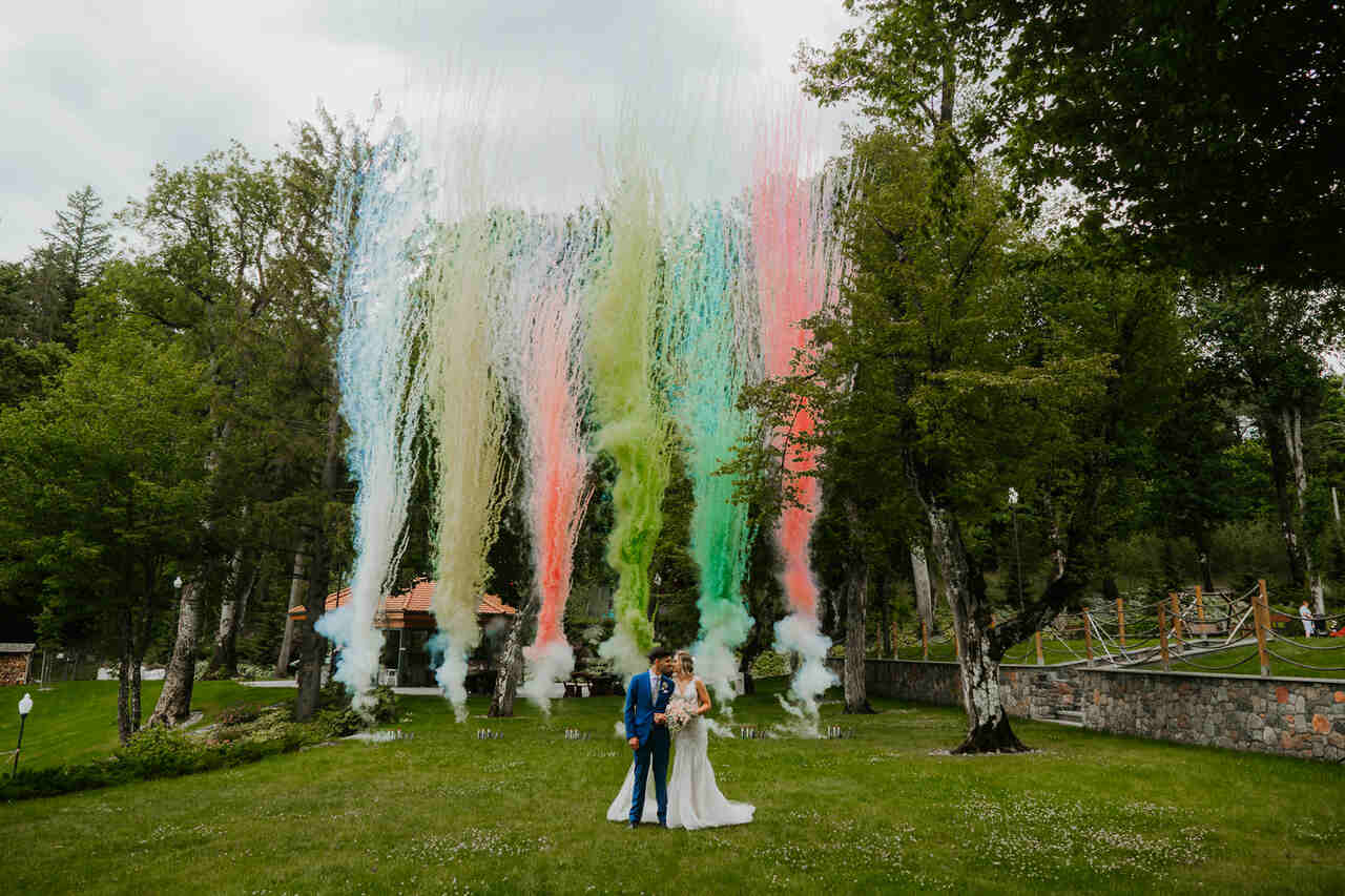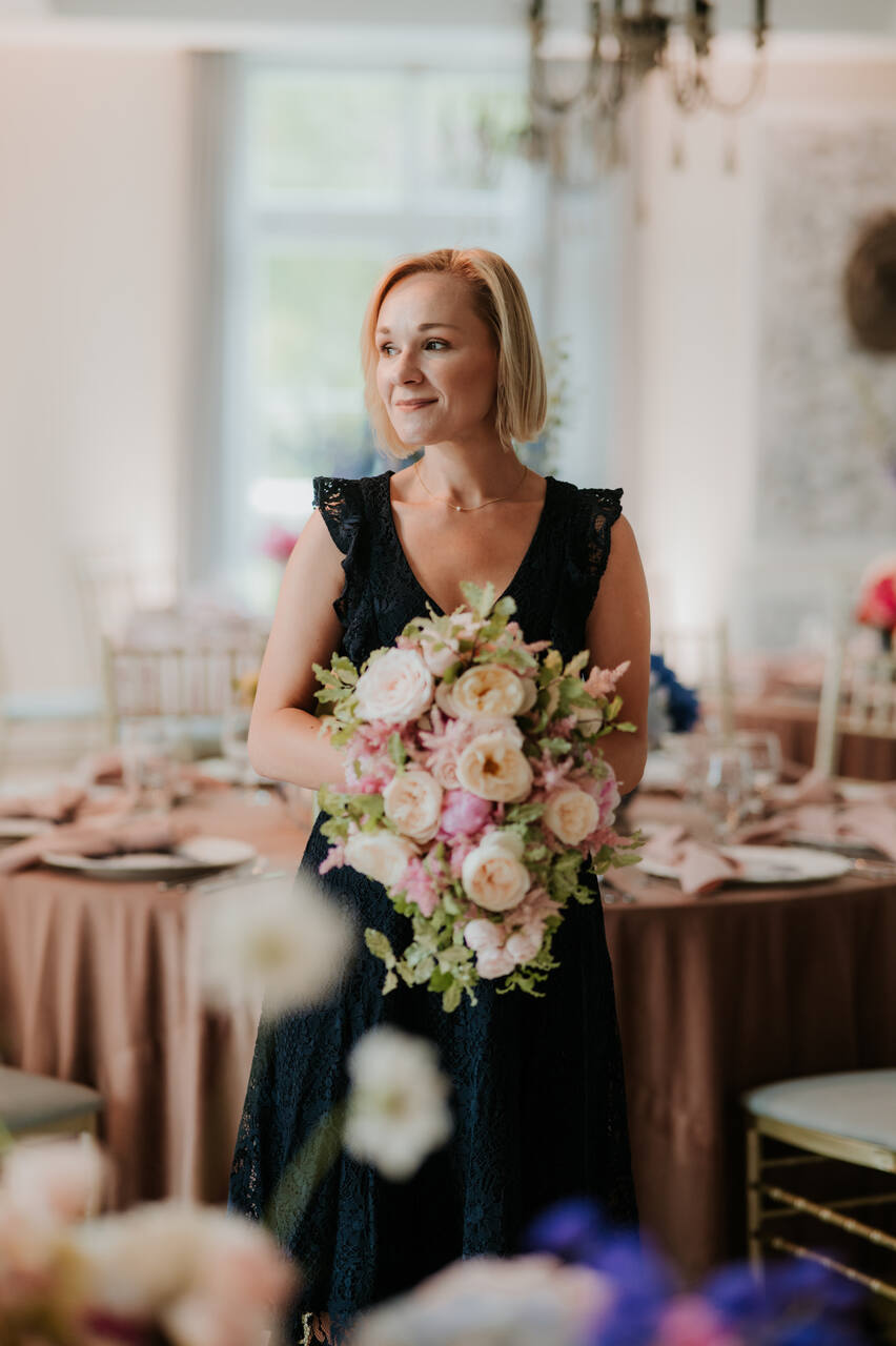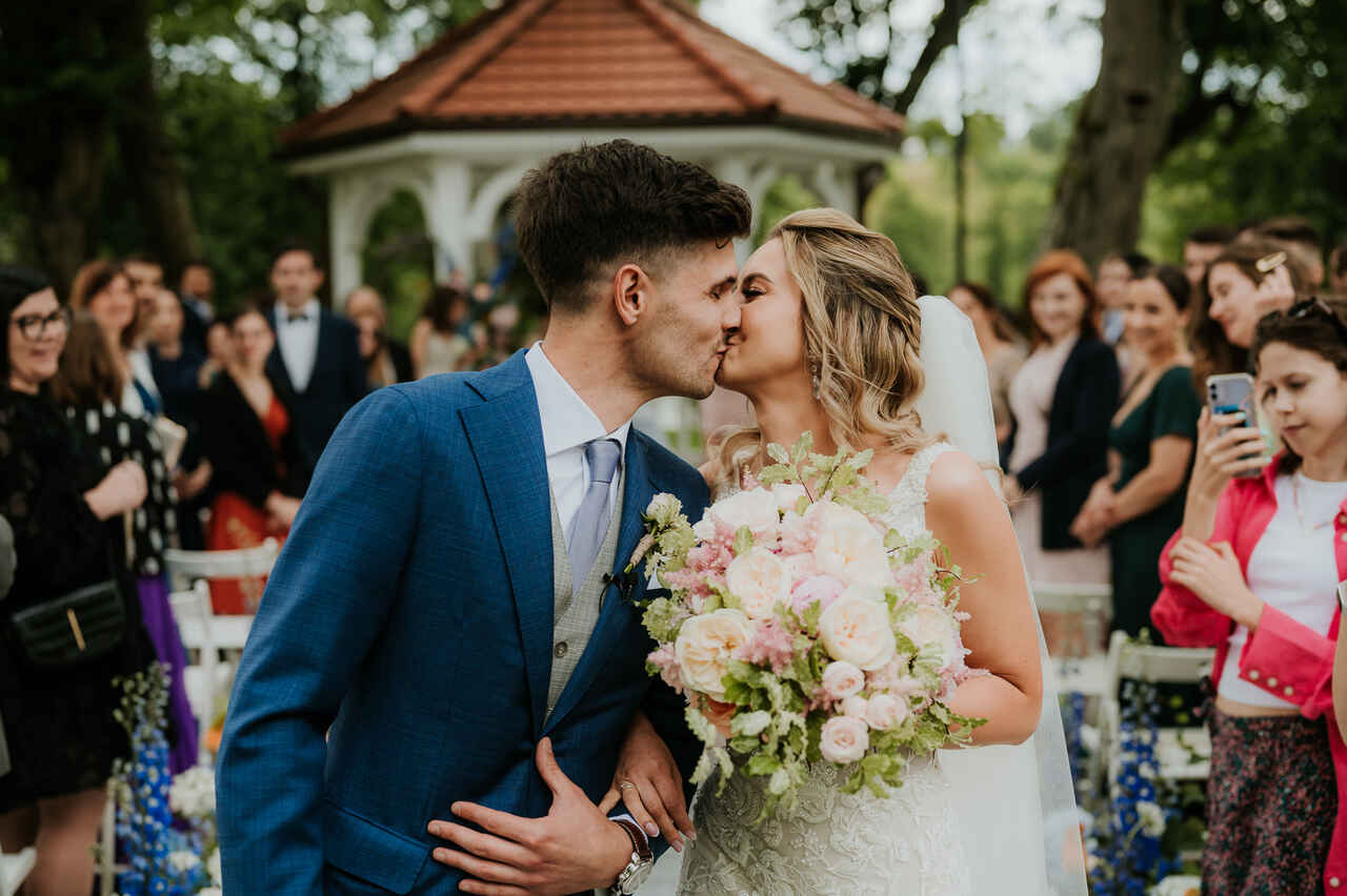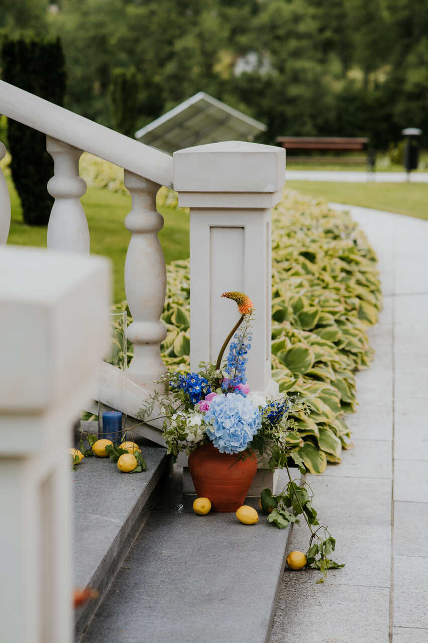 Na polsko-portugalskim ślubie nie mogło zabraknąć akcentów dwóch kultur, które połączyła w jedno miłość Ani i Rui (w Polsce zwanego Filipem). Na trzydniową celebrację goście zaproszeni zostali do perełki Kaszub, Leśnego Dworu w Sulęczynie, które raczył gości smakiem kaszubskich potraw w nowym wydaniu, a oczy radował niebanalnym designem, który wpisał się idealnie w pełne relaksu chwile tej uroczystości. Wisienką na torcie, a zarazem kluczowym elementem był koncept dekoratorski, który zgrabnie połączył dwie kultury polską i portugalską. Stworzone na zamówienie fajansowe wazy z motywem portugalskim, stanowiły element, który nie tylko przyciągał uwagę, ale oddawał charakter tej namiętnej miłości naszej pary Ani i Rui. Całość dopełniały kwiaty i cytrusy. Nawet tort musiał pasować do konceptu ku uciesze Pary Młodej i gości, musisz mi wierzyć na słowo, że był nie tylko piękny, ale też i pyszny. Na specjalne zamówienie produkowana była papeteria ślubna, aby cały koncept był idealny aż po detale. Ileż niespodzianek czekało na gości i parę młodą tego wieczoru - wystrzał kolorowych dymów, w prezencie ode mnie, pokaz fajerwerków, a goście w prezencie otrzymali swój portret malowany akwarelami - czyż to nie piękna pamiątka? Wesele Ani i Rui to festiwal smaków, kolorów i emocji. Dzień, który przerósł, jak Para Młoda sama dodaje, ich najśmielsze wyobrażenia.